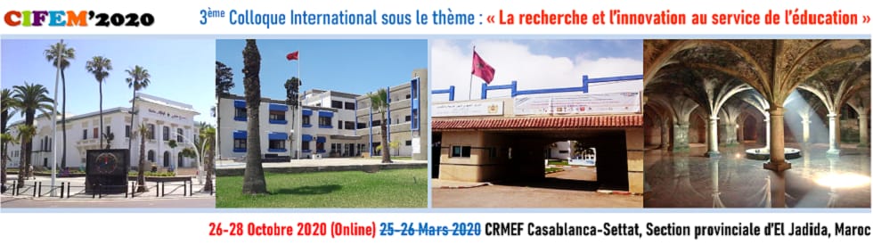 إطار النهوض بالبحث العلمي والتربوي بالمراكز الجهوية لمهن التربية والتكوين (CRMEFs) الذي يندرج ضمن السياق العام لإصلاح المنظومة التربوية من خلال الرؤية الاستراتيجية 2015-2030، ينظم المركز الجهوي لمهن التربية والتكوين الدار البيضاء-سطات، الفرع الإقليمي للجديدة النسخة الثالثة للندوة الدولية حول التكوين والتدريس في مجالات الرياضيات والعلوم والتقنيات (CIFEM’2020) وذلك خلال الفترة ما بين 26 و 28 أكتوبر 2020.